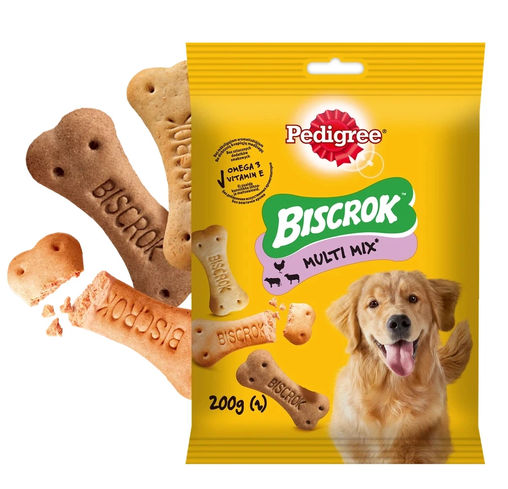Pedigree Biscrok Biscuits Pour chiens adultes sous forme de petits os avec de l’agneau, du poulet et du bœuf 200g – Description du produit.